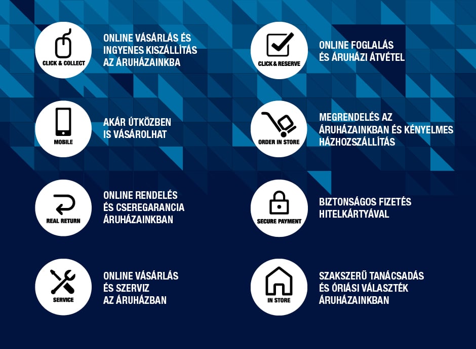 Az áruházi vásárlás egyik előnye, hogy mindent helyben megnézhetünk és kipróbálhatunk. Áruházainkban tanácsot is kérhet, majd lehetősége van még ott helyben online meg is rendelni a terméket és akár házhoz is szállíttatni azt.